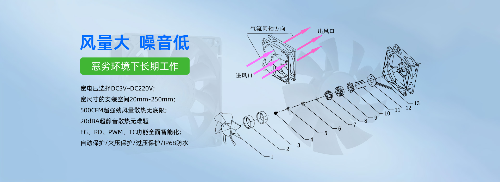 深圳市毅榮川電子科技有限公司于2005年創(chuàng)立于中國(guó)深圳、是一家專業(yè)研發(fā)、生產(chǎn)、銷售散熱風(fēng)扇的高科技企業(yè)。所生產(chǎn)的直流風(fēng)扇、交流風(fēng)扇、鼓風(fēng)機(jī)、防水/防塵風(fēng)扇、EC變頻風(fēng)扇、直流散熱風(fēng)扇、汽車散熱風(fēng)扇、靜音散熱風(fēng)扇、支架散熱風(fēng)扇、渦輪增壓風(fēng)扇、直流散熱風(fēng)機(jī)、直流離心風(fēng)機(jī)、直流鼓風(fēng)機(jī)、鼓風(fēng)機(jī)廠家、新能源風(fēng)扇、無刷馬達(dá)等,已廣泛應(yīng)用于:通訊設(shè)備、UPS電源、醫(yī)療器械、電焊機(jī)、工控設(shè)備、家用電器、空氣凈化行業(yè)、汽車行業(yè)、投影儀、美容儀器、運(yùn)動(dòng)器材等行業(yè)領(lǐng)域。